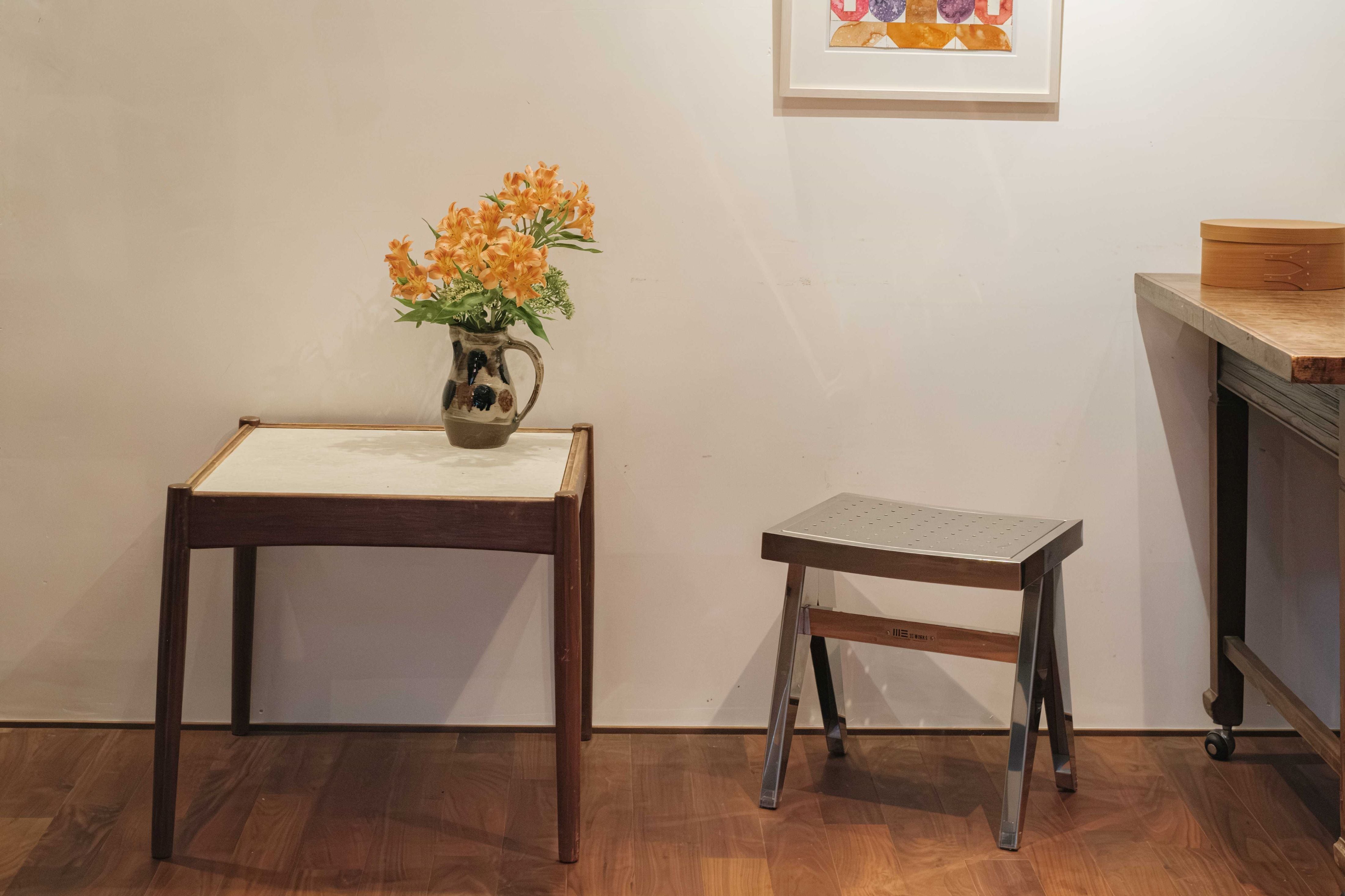1950年代のジャンヌレデザインをベースにステンレススチールで再現。耐久性に優れた素材が特徴です。座面は職人の手によって滑らかな曲線が施されており、ステンレスの美しさの中に柔らかさを感じさせるデザインが特徴です。